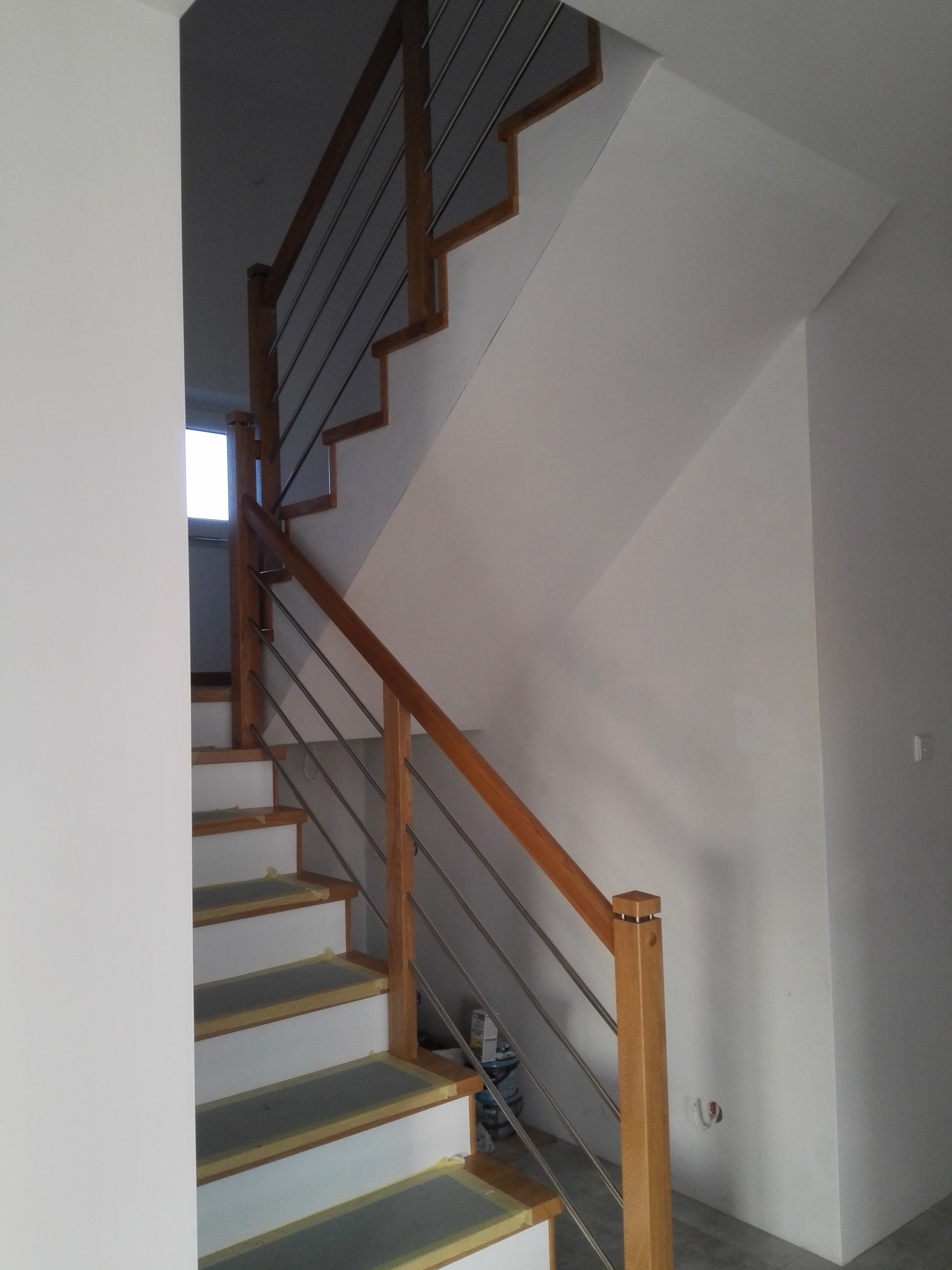 Hej. Okno 3 skrzydłowe 270x150. Schody są ze spocznikiem trochę inaczej wyszły ponieważ w trakcie budowy projektanci od rekuperacji namówili nas na zmianę rur spiro ,że zamiast w stropie mamy na jętkach na górze i pod stropem. Myślę ,że to rozwiązanie jest lepsze zawsze możemy rozebrać zabudowę z ka...