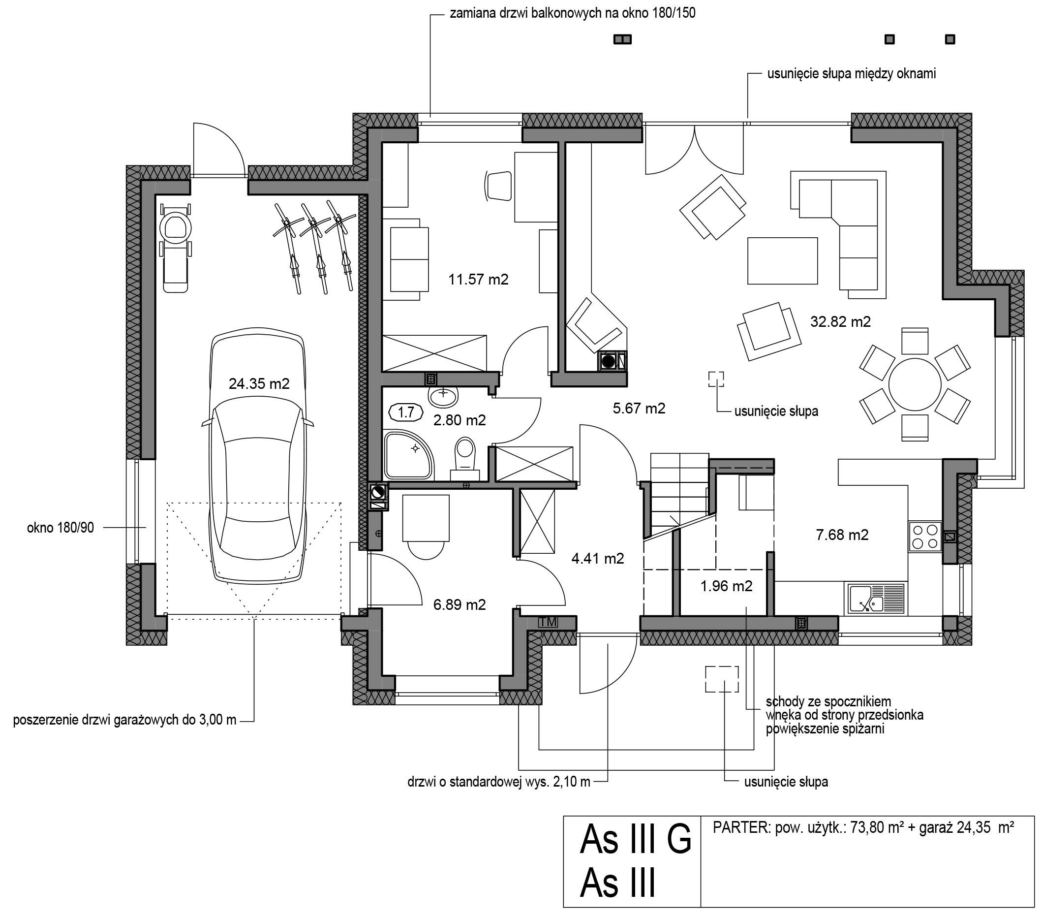 Na rzutach naniesione niektóre zmiany:
