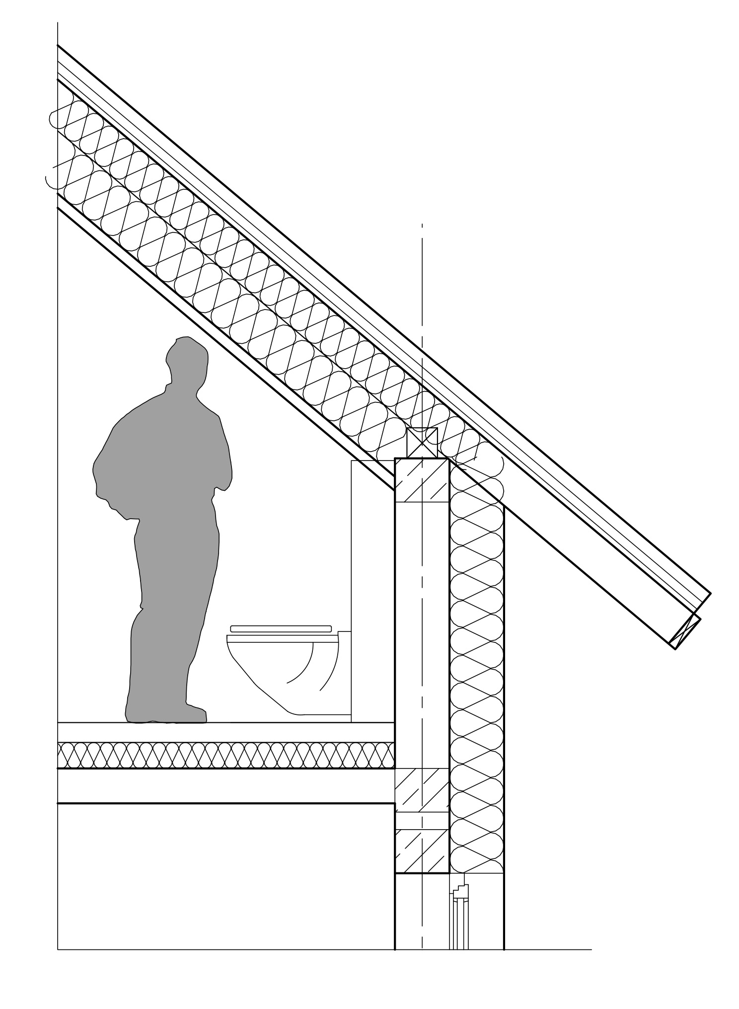 Dla mężczyzny w o wzroście 180 cm wyglądałoby to mniej więcej tak:KaKo pisze:Witam, czy w górnej łazience umieszczenia muszli WC pod skosem jest realne i bezproblemowe w użytkowaniu? Czy przy pozycji stojącej mężczyźni nie będą głową haczyć o skos? Czy lepiej umiejscowić ją na ścianie obok okna? Proszę o podpowiedź