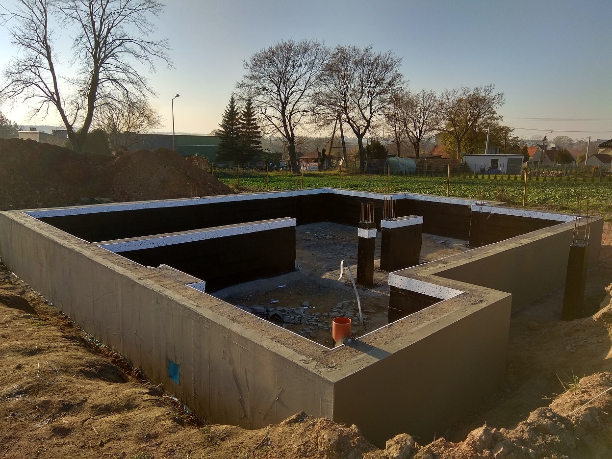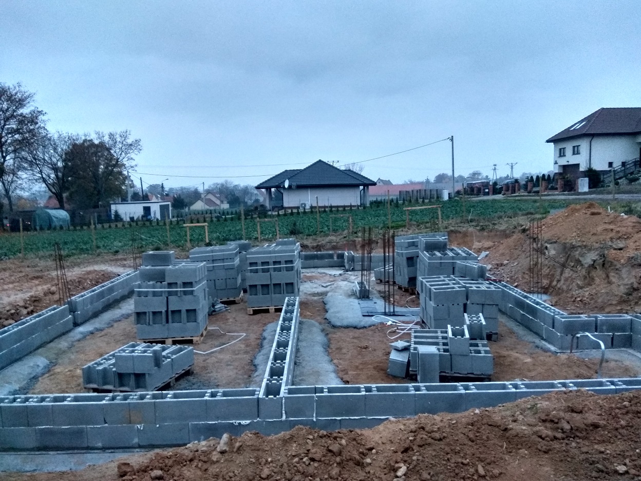 fundamenty mamy gotowe oraz drenaż fundamentów, kanalizacje i odgromy.