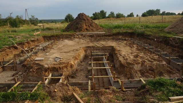 Prace postępują. Fundamenty robimy systemowo, w środek pustaków zostanie zalany beton.