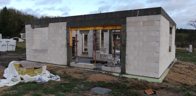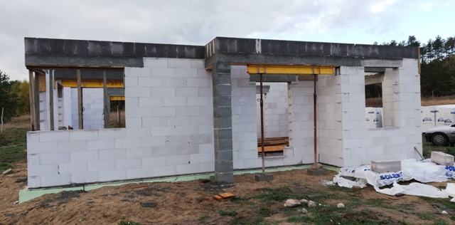 zrezygnowaliśmy z wykuszu z balkonem, dodalismy drzwi zewnętrzne do kotłowni. Obecnie położony mamy już strop, ale to nie koniec w tym roku .... dalej budujemy