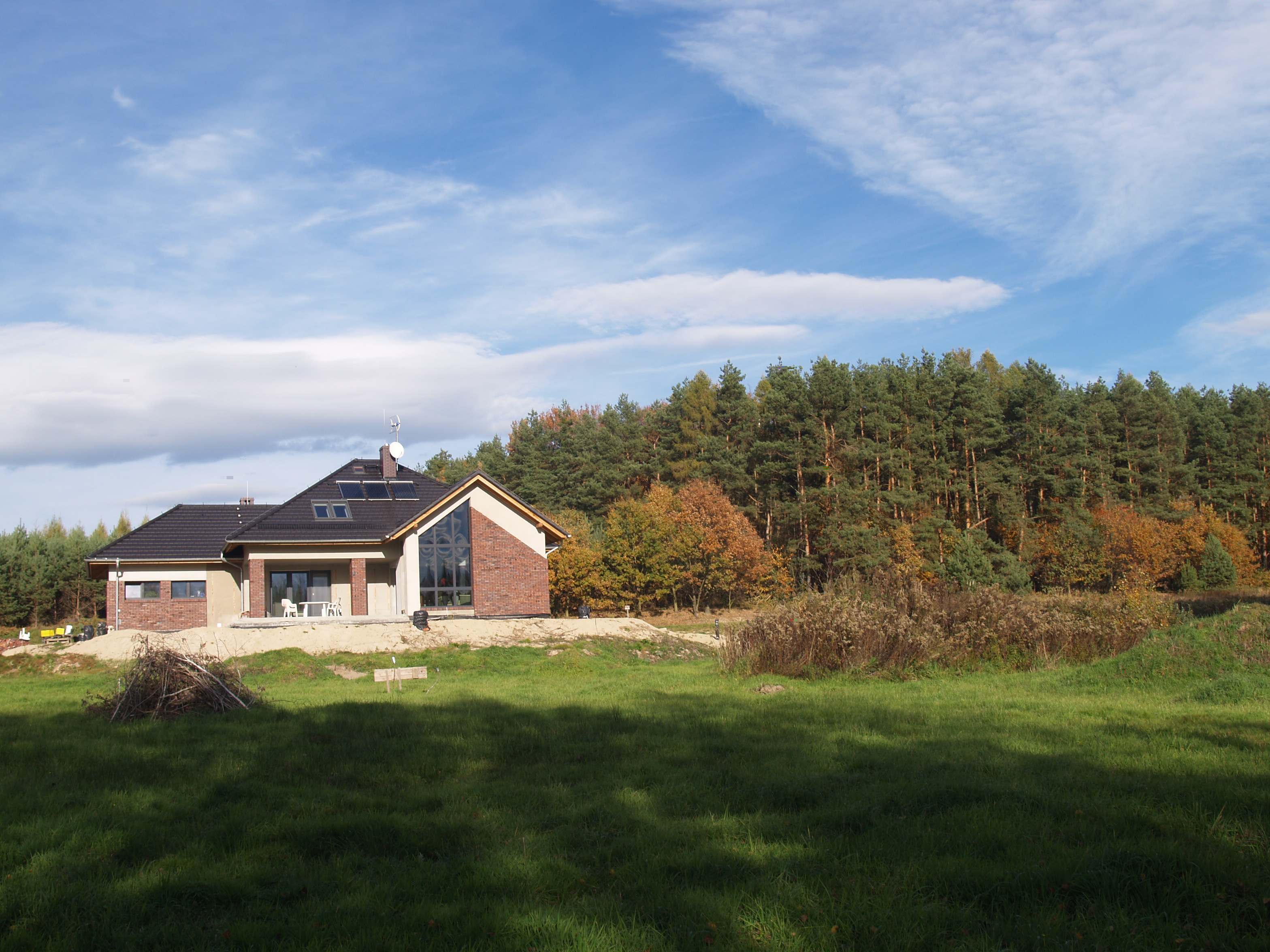 dom z elewacją z klinkieru wygląda ślicznie. Poza tym zdjęcie bardzo nam pomogło podjąć decyzję co do filarów. Widzę, że są na dwie i pół cegły. Od dwóch dni zastanawiamy się czy to nie za dużo. A teraz widzę, że nie.