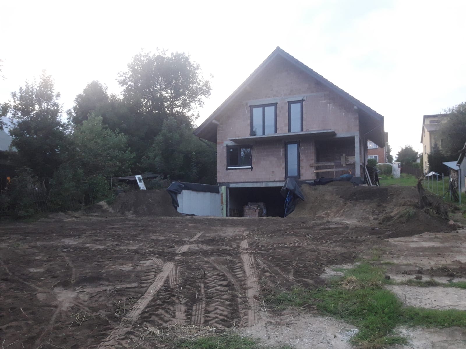 a tu zdjęcie domu w trakcie niwelowania terenu
