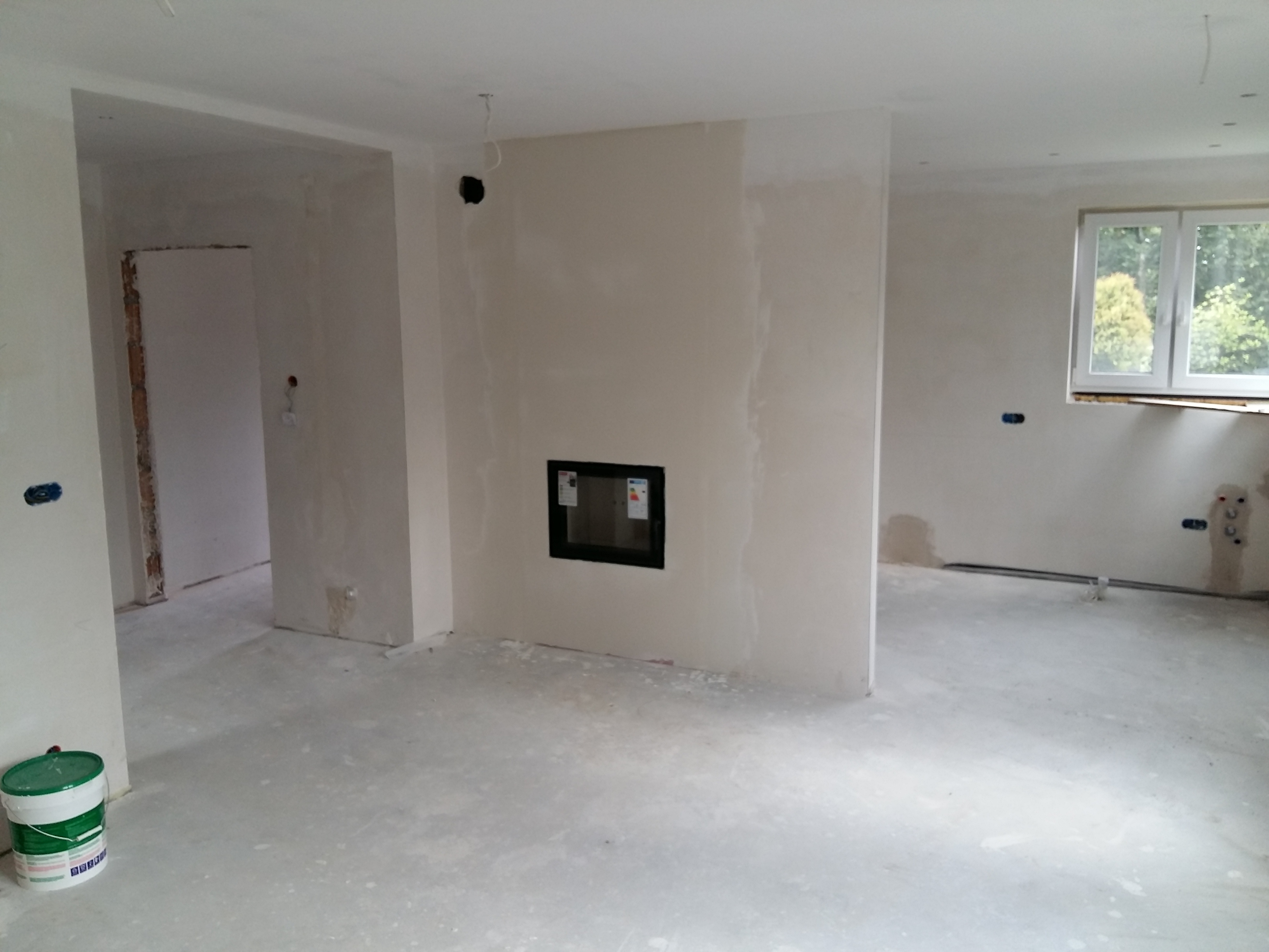 Jeszcze do zamknięcia planu troszkę zadań zostało, ale już jest milo. Rzutem na taśmę udało się dom docieplić przed zimą - umówiona prawie rok wcześniej załoga na dwa tygodnie przed rozpoczęciem roboty oznajmiła, że rzuca to wszystko i jedzie w Bieszczady (no nie dosłownie, ale nonszalancja mniej więcej w tym tonie). Było więc dość nerwowo. Płytki i panele poszły gładko. Drzwi wewnętrzne pozwoliły mi rozwiązać zagadkę nadzwyczaj komfortowego przemieszczania się po górnej kondygnacji - wszystkie otwory miały ok. 220 cm wysokości (ościeżnice są na max 208, więc czekało nas kolejne poprawianie majstrów, za to żadnej nie trzeba było docinać, więc 10 par drzwi chłopaki wprawili w jeden dzień). Gaz woda i szambo (to ostatnie też oczywiście z drobnymi przygodami) były na czas. Malowanie wszystkiego - we własnym, że się pochwalę, zakresie. Przed pierwszymi śniegami i mrozami stworzyliśmy jeszcze tymczasowy chodnik i podest pod schody. Do tego jeszcze hipsterskie tarasy z palet i gotowe! Stan akceptowalny osiągnięty.