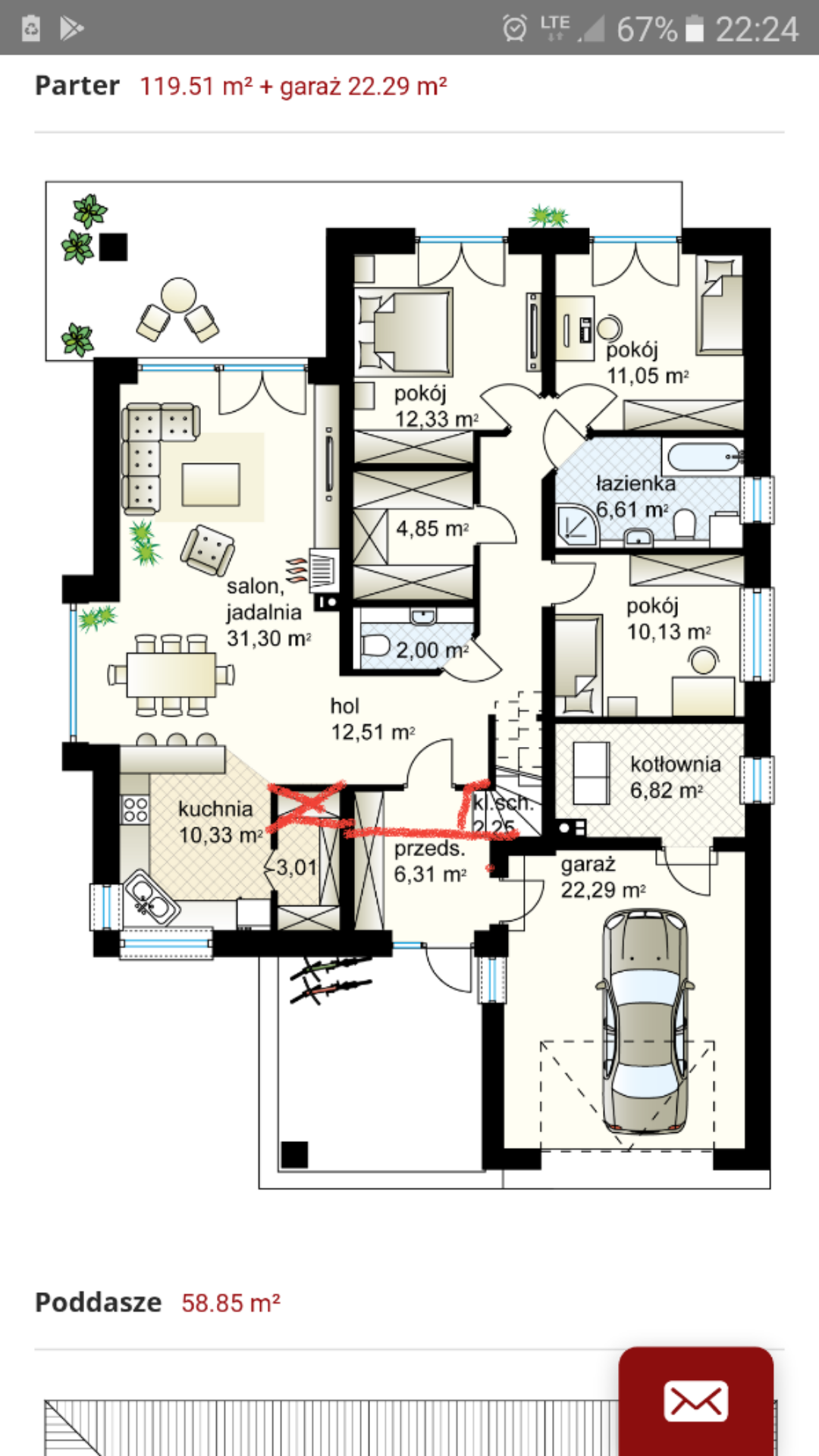 Szczerze mówiąc to u nas koncepcja zmienia się co chwile, nie planujemy użytkować ale mimo wszystko mąż chciał zorganizować poddasze (jest tam ogromną przestrzeń pierwotnie jako piwnicę) ale nie wiem czy przypadkiem nie zostanie tam zorganizowany w przyszłości jakiś pokój np dla gości czy też ogromną sypialnia z garderoba