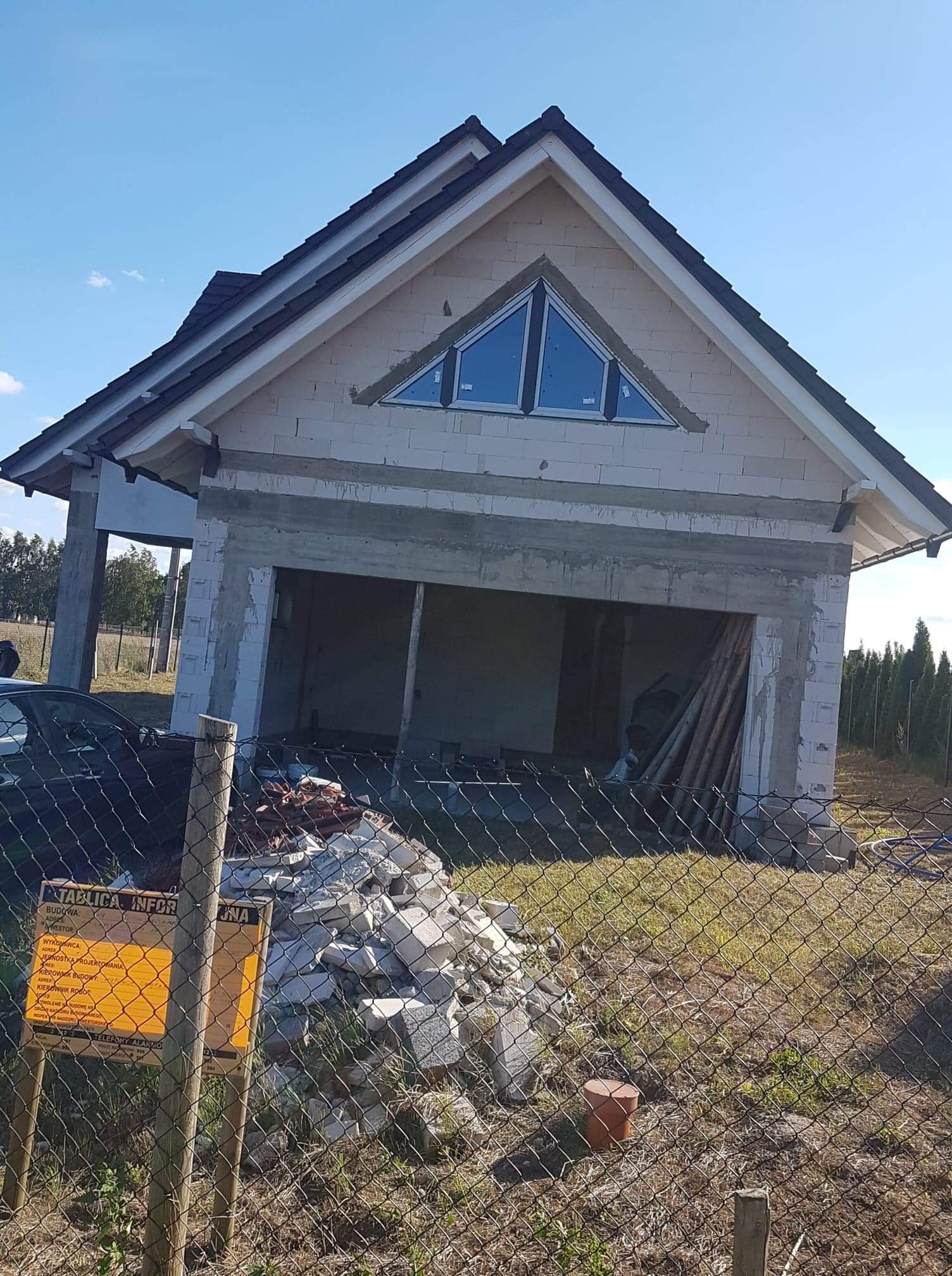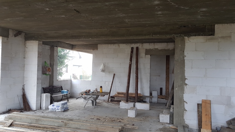 Ja mam tylko takie zdjęcie. Zaznaczam, że nie ma słupa pomiędzy kuchnią a salonem i pokoju, nie ma jeszcze wymurowanej łazienki, która powinna być po prawo. No i my budujemy lustrzane odbicie.