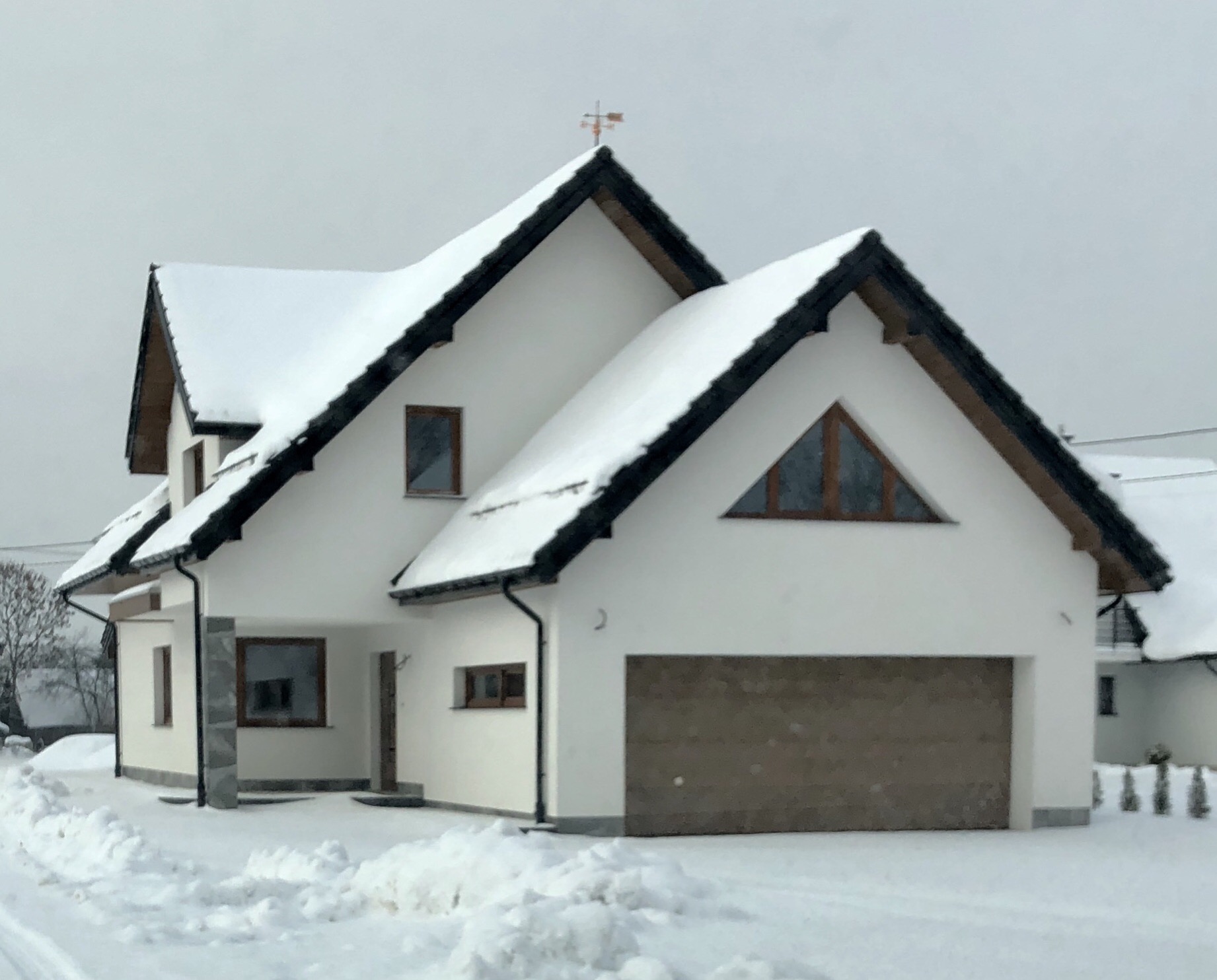 Witam wrzucam SSO Akord II nf40 z małym zmianami, na wąska działkę do 16m... I spadkiem ok 1,8m na calej długości budynku. Garaż obniżony w stosunku do domu ok 1.5m, co dało wyższy pokój nad garażem i wyższy garaż. Budowany metoda dryfix 25 z lanymi skosami... Dachówka braas topas 13...