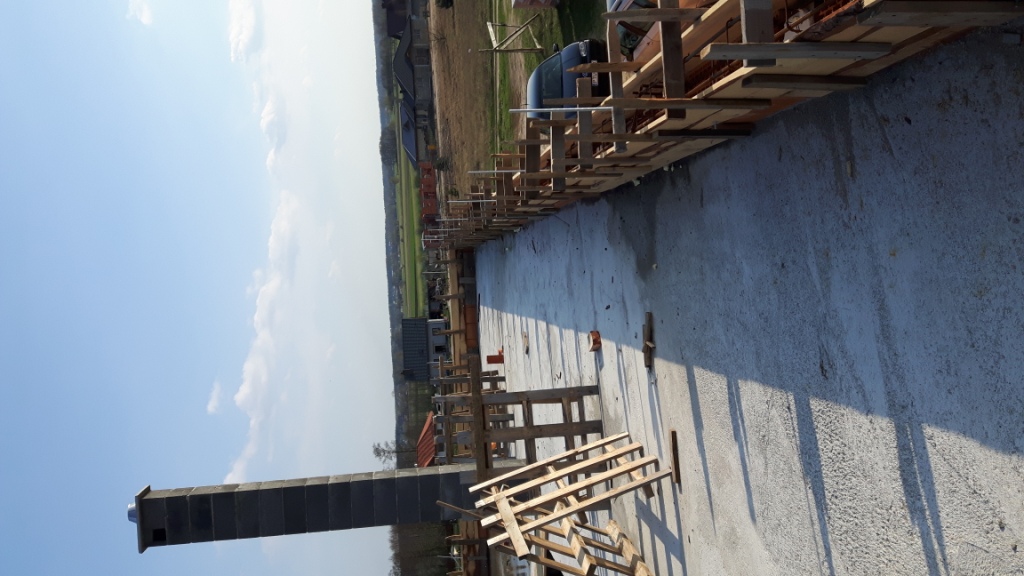 Wieniec pod murłatę szalunek oraz efekt po częściowym rozszalowaniu. Czekamy za dachem :)