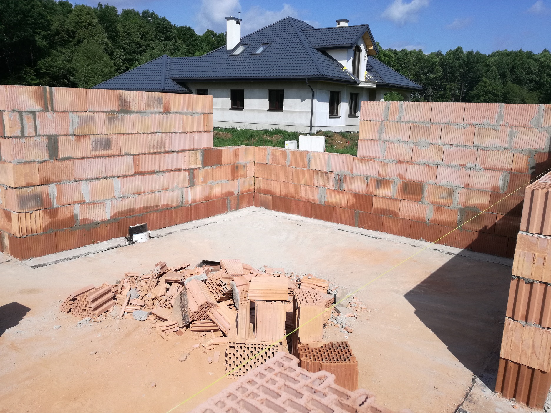 Ja niestety nie miałem ostatnio powodów do radości, bo w czwartek zaczęto murować ściany, w piątek był ciąg dalszy, a ponieważ w tych dniach byłem w delegacji i nie mogłem pilnować robót na miejscu, to efekt jest jak na fotkach poniżej...
