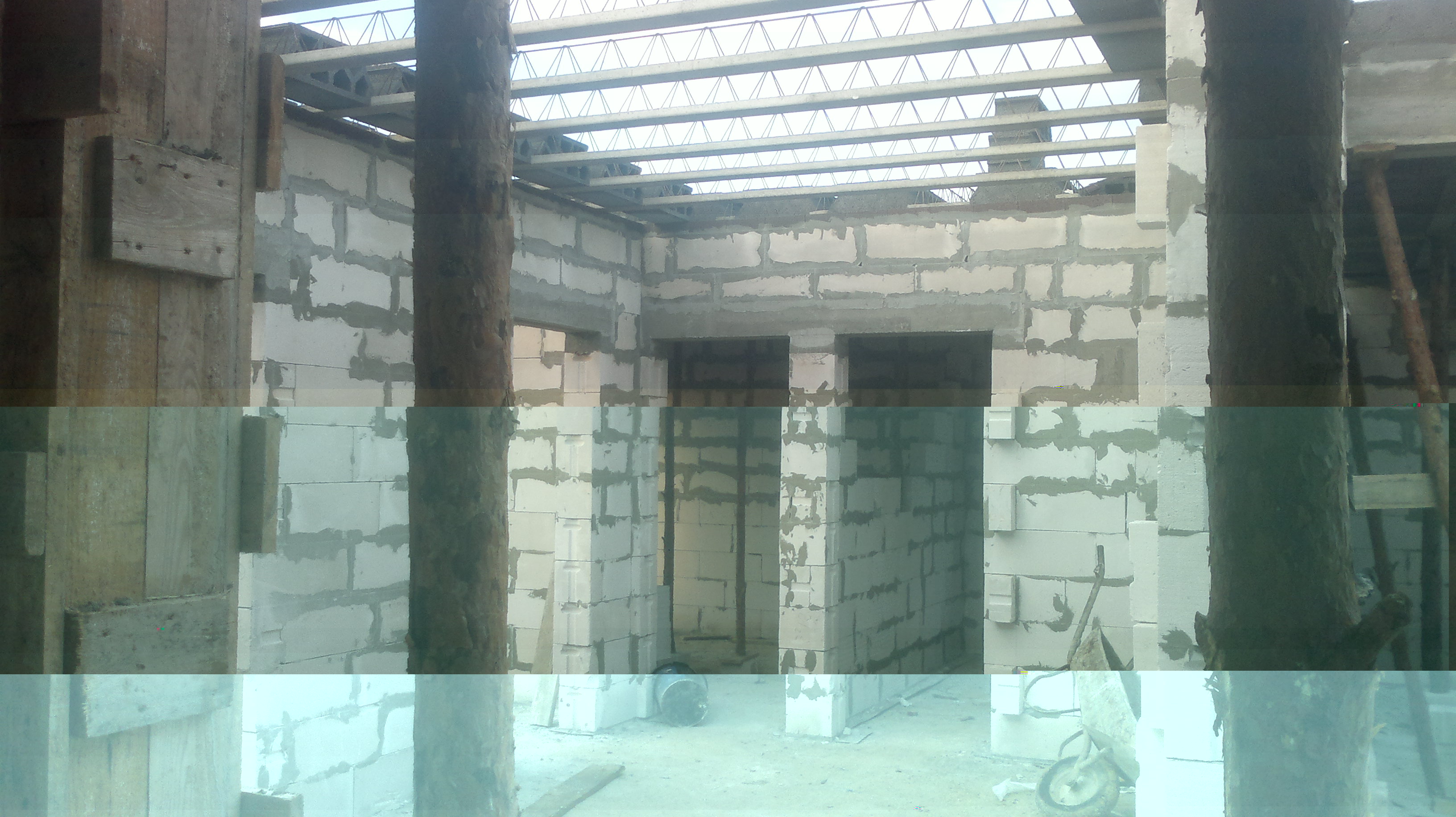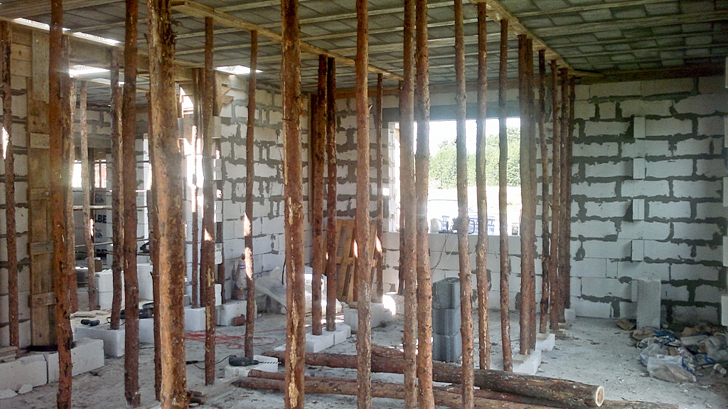 Kominy pomurowane, wszystkie slupy zalane, zostal kawalek stropu nad tarasem wejsciowym i powoli mozna myslec o zalewaniu