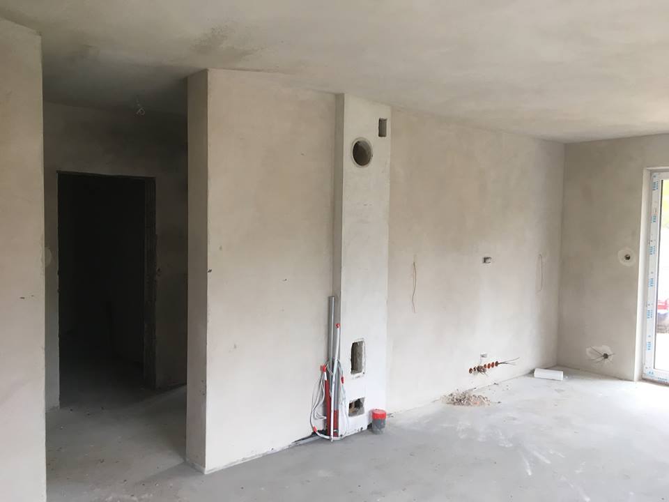 Ze środka na razie mam tylko 2 zdjęcia i niewiele na nich widać. Kawałek salonu, gdzie ma być kominek i widok na korytarz z większego pokoju na górze. Dom budujemy na Podlasiu :)