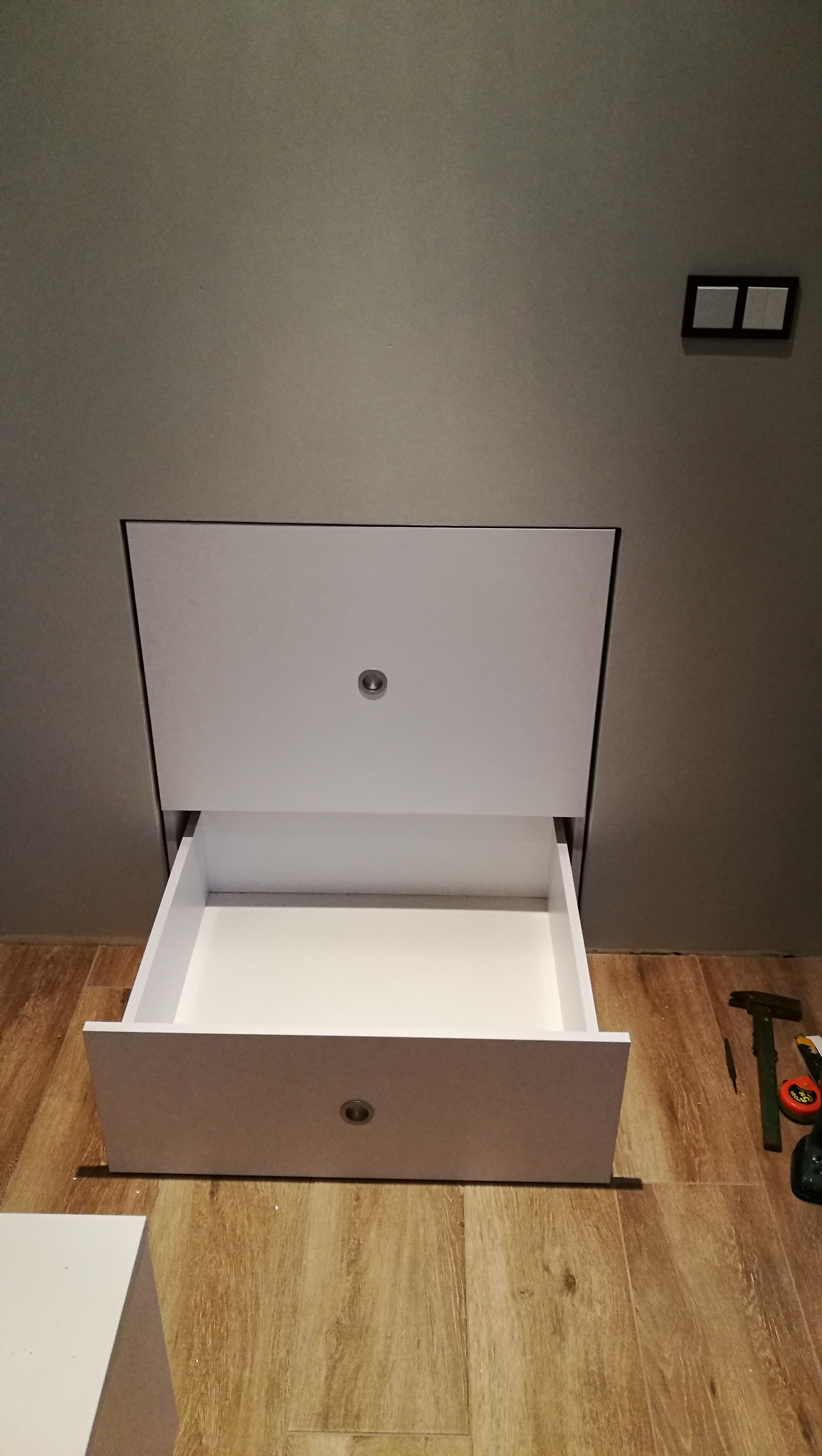 w międzyczasie narodziła nam się córka więc moja uwaga skierowana jest w wiadomą stronę ale czasem uda się coś zrobić... Dziś zagospodarowałem gdzieś na forum podpatrzoną dziurę na buty pod schodami i wyszło to tak