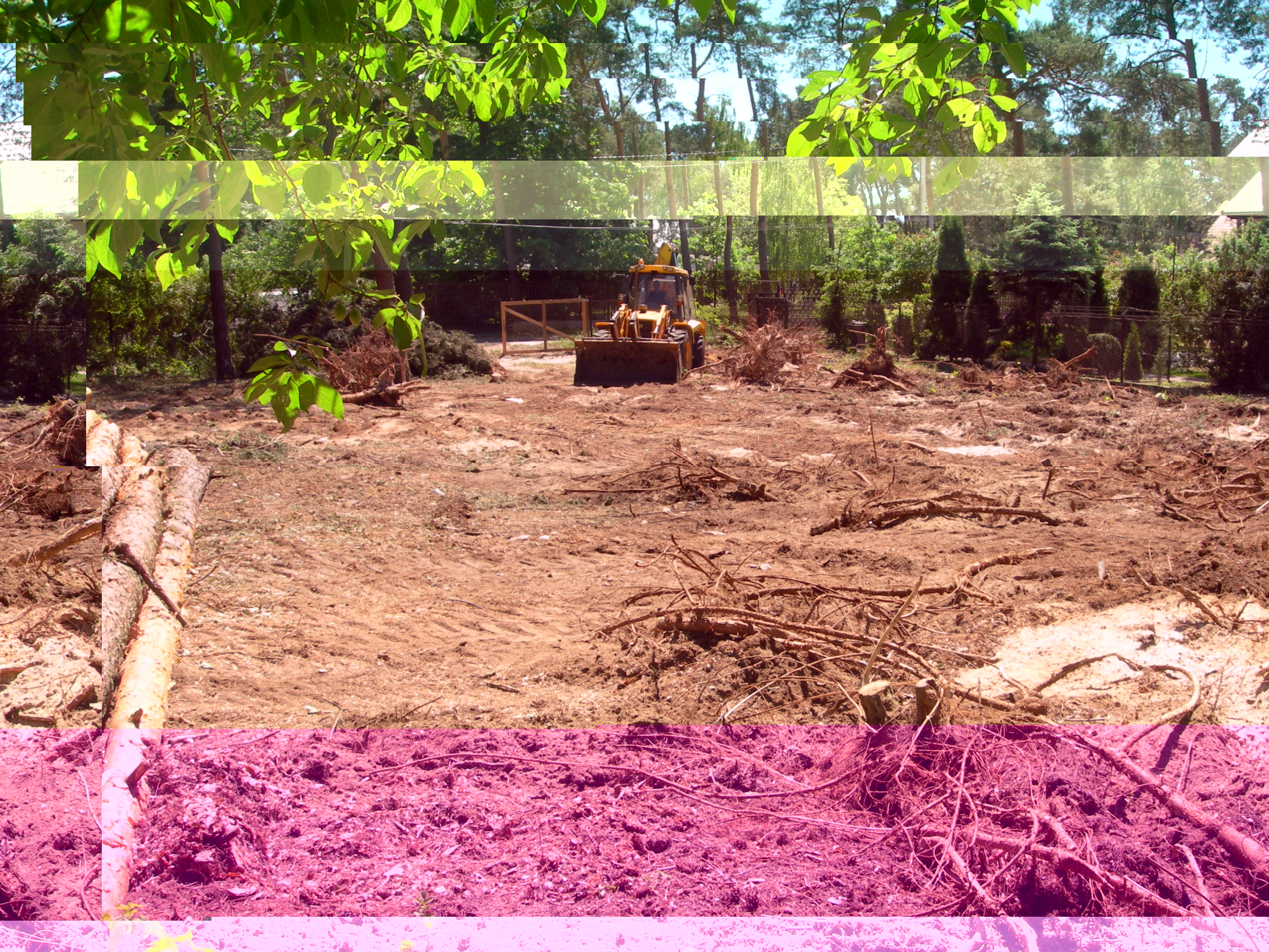 Usunięcie wszystkich karp po drzewach, których było niestety aż trzy wywrotki oraz lekkie podrównanie terenu