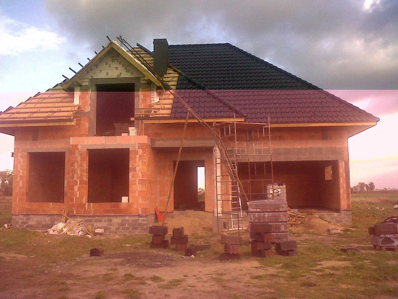 U nas znów malutkie postępy... kominy wyciągniete, 3/4 pokrycia dachóweczka