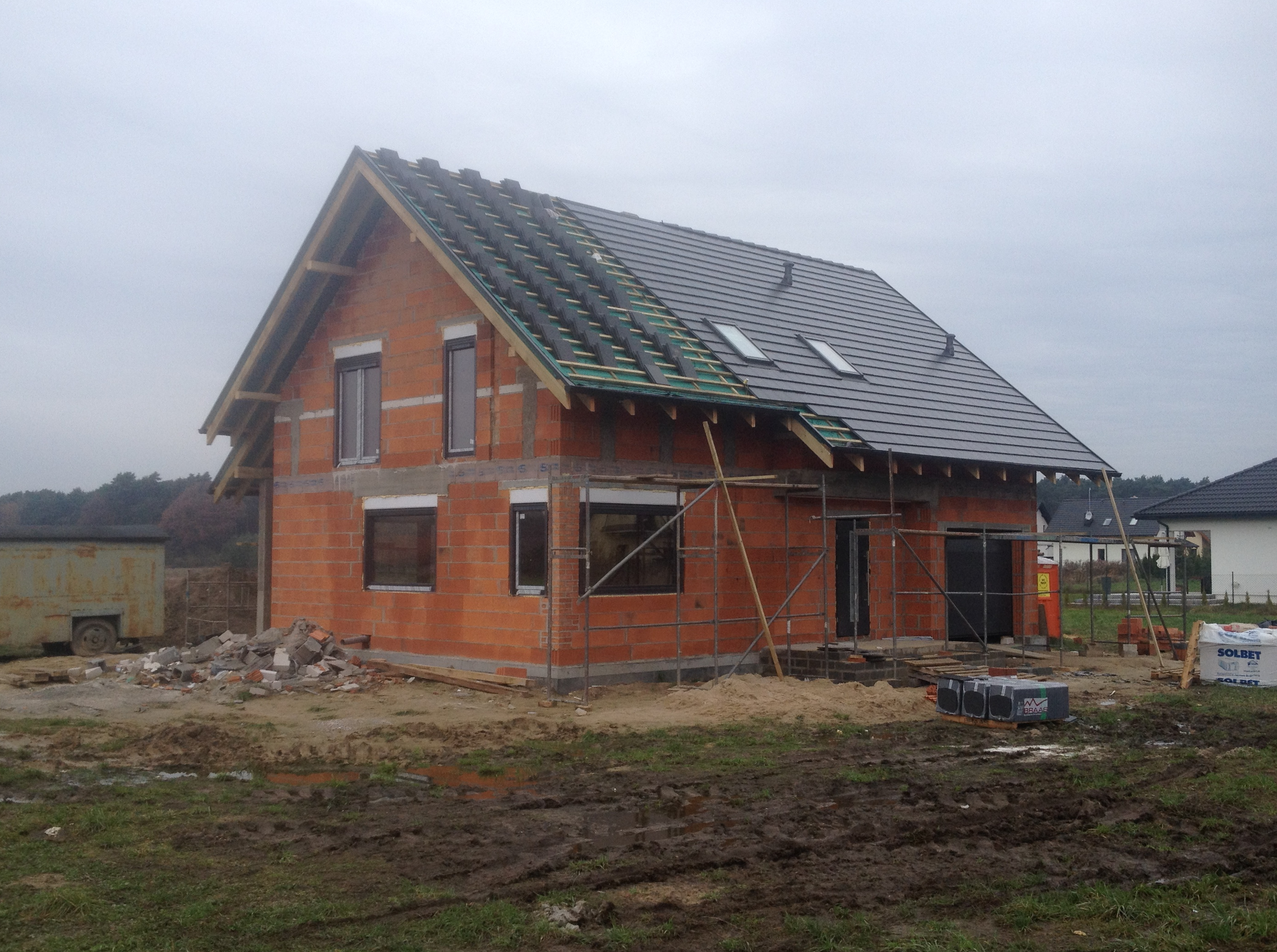 koszt systemem zleconym (takim budujemy) w zaszadzie nie odbiega dużo od wyceny podanej na stronie. Koszt może wzrosnąć w zależności od wyboru materiału, rodzaju okien, typu rolet, dachówki, opcji dodatkowych typu stryszek, podbitka itp. W naszym przypadku te rzeczy zadecydowały o troche wiekszym koszcie.