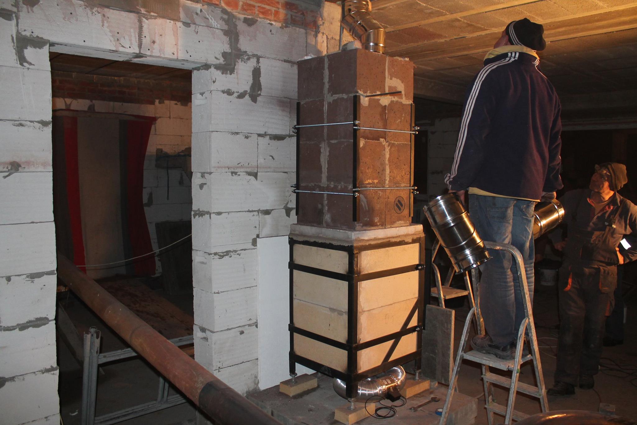 Tylna ściana pieca będzie ścianą w pokoju na dole, ściana działowa będzie dostawiona do boku pieca aby piec wystawał do pokoju.