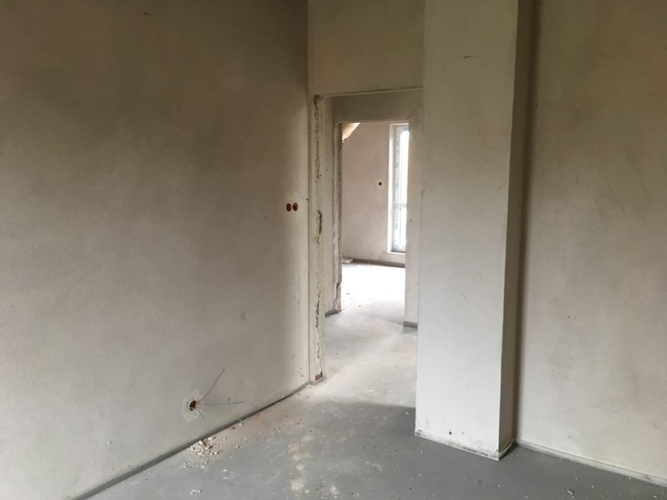 Ze środka na razie mam tylko 2 zdjęcia i niewiele na nich widać. Kawałek salonu, gdzie ma być kominek i widok na korytarz z większego pokoju na górze. Dom budujemy na Podlasiu