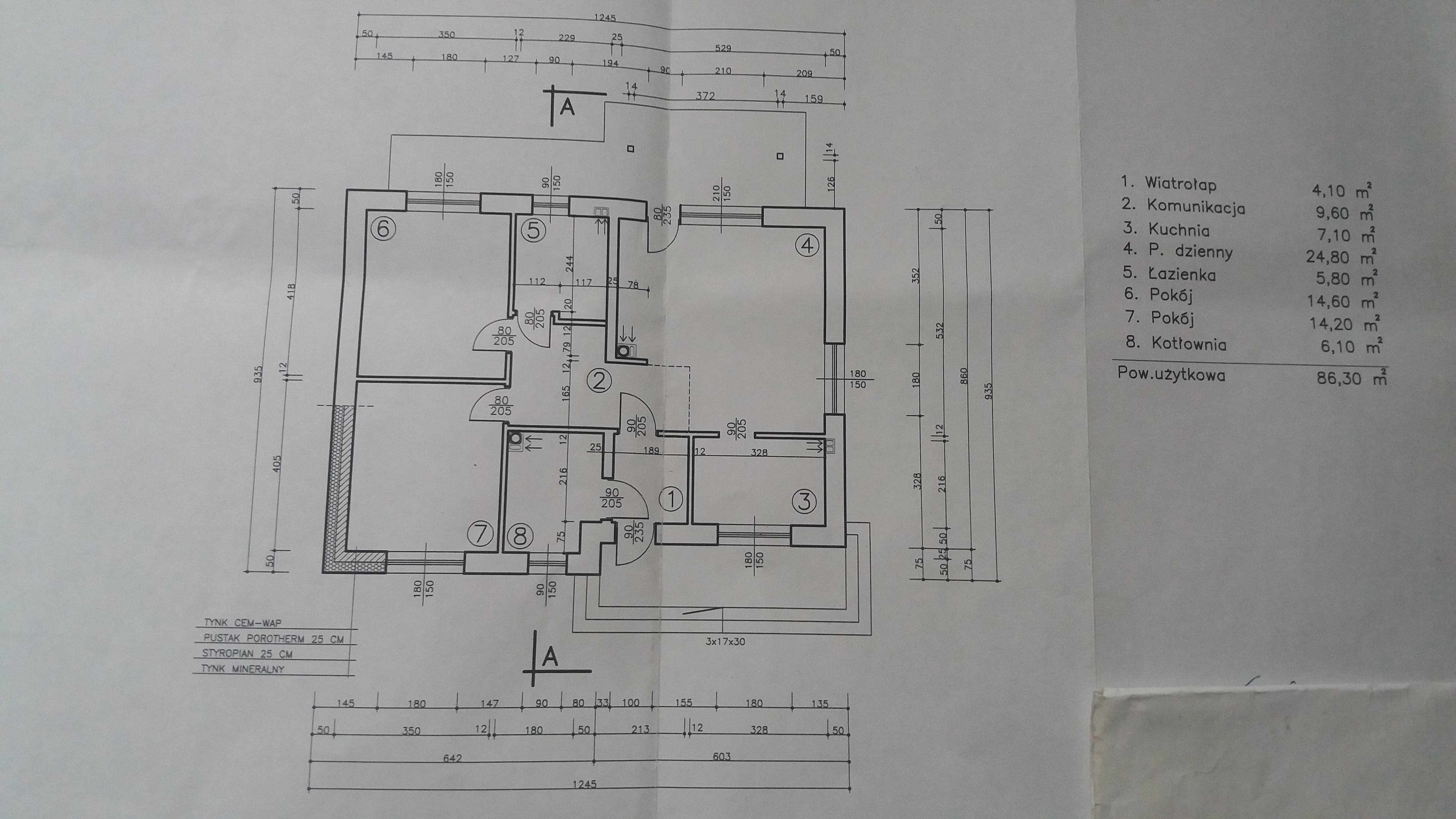 Rzut parteru po zmianach , zmianie uległ również kąt nachylenia dachu na 30°. Zmieniliśmy również strop na Teriva.