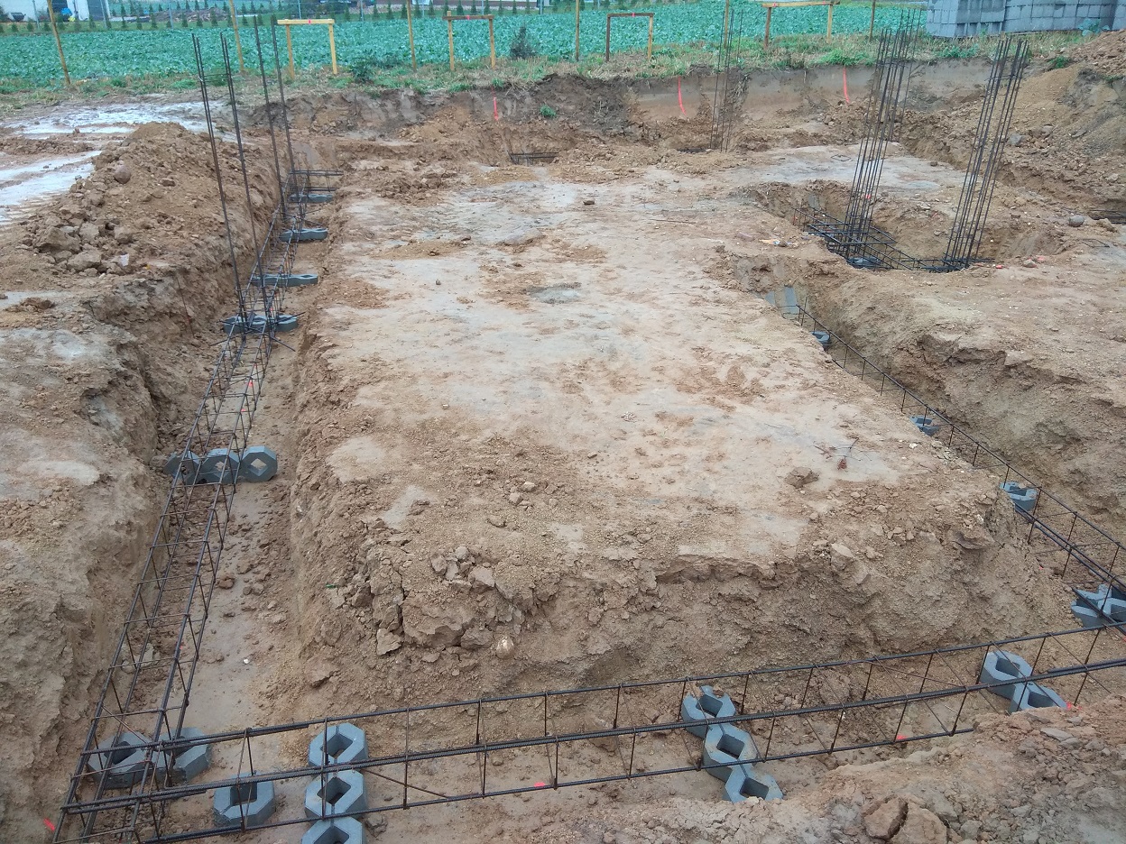 fundamenty mamy gotowe oraz drenaż fundamentów, kanalizacje i odgromy.