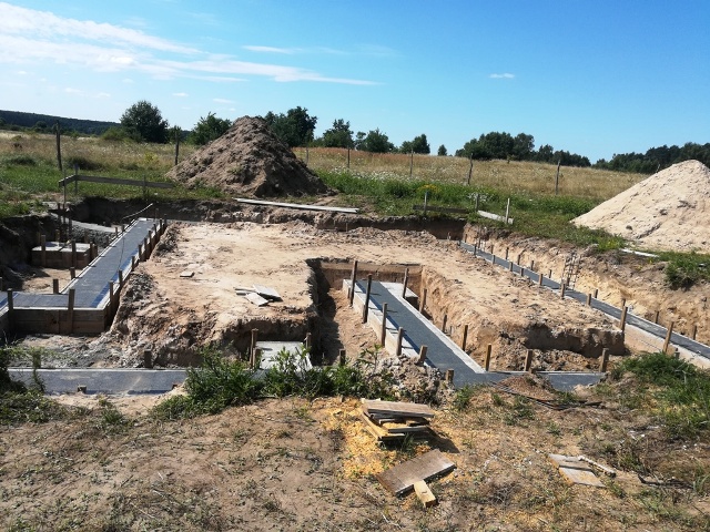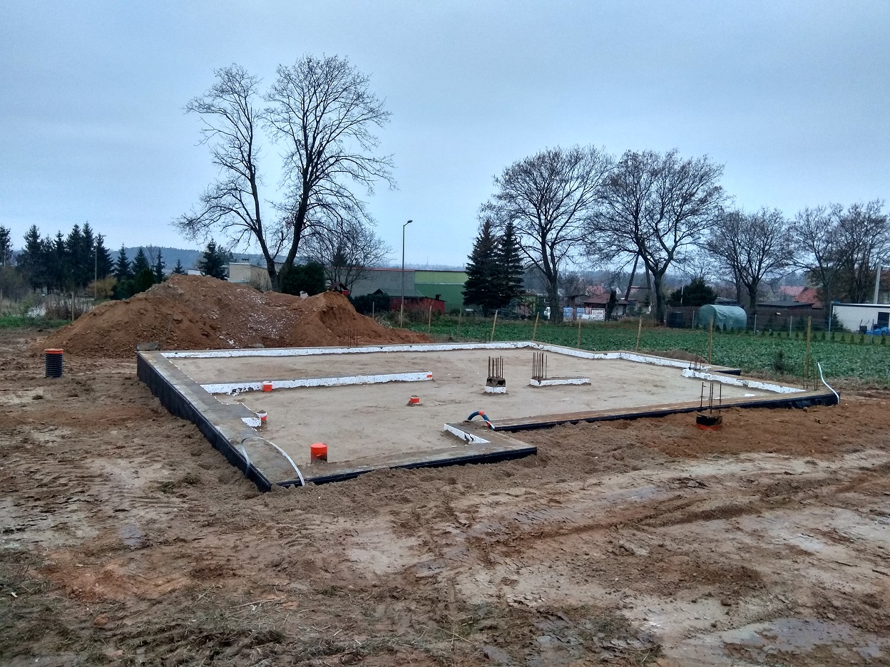 fundamenty mamy gotowe oraz drenaż fundamentów, kanalizacje i odgromy.