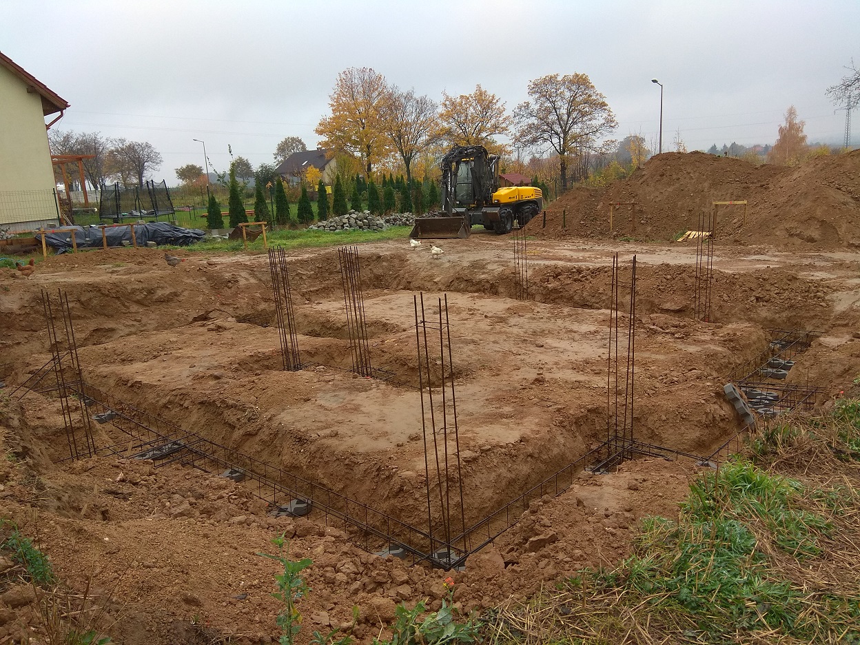 fundamenty mamy gotowe oraz drenaż fundamentów, kanalizacje i odgromy.