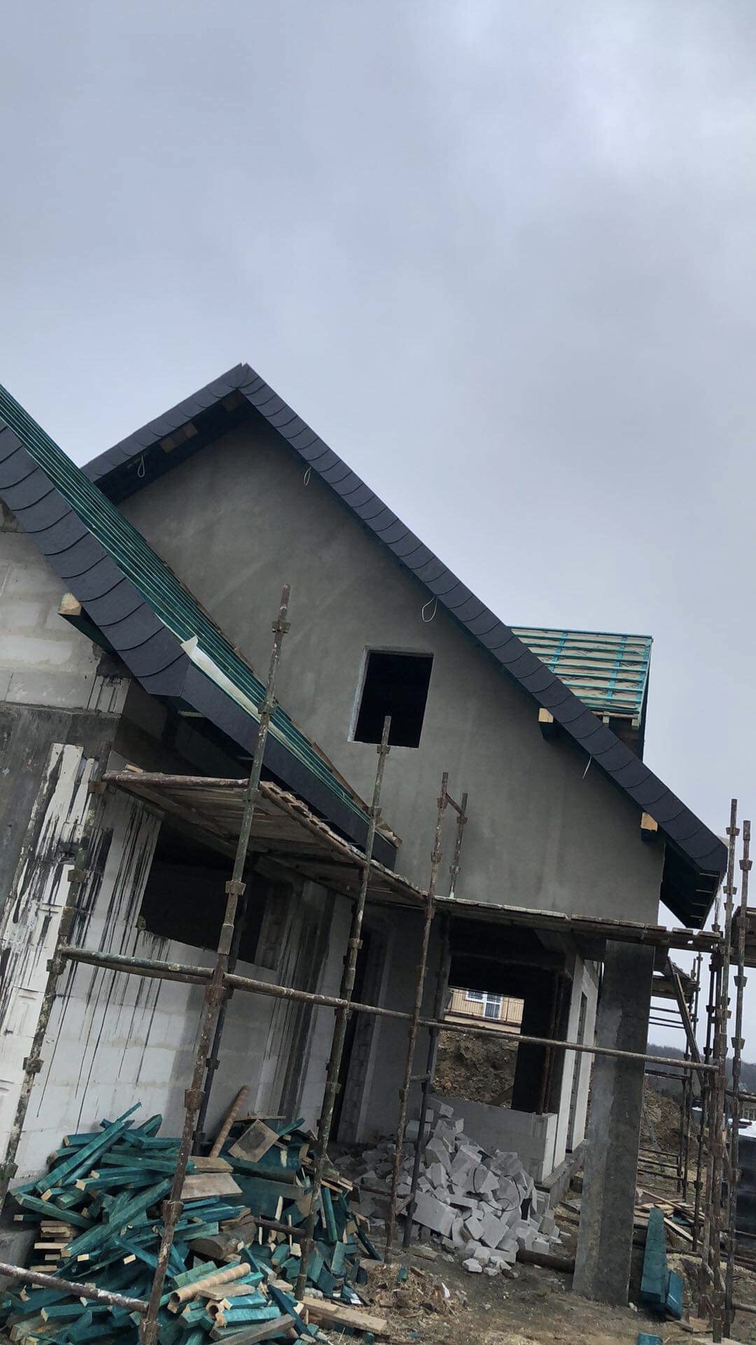 troszke się ich nazbierało a z dnia na dzień coraz więcej rzeczy zrobionych. Teraz czekamy na wyłożenie dachówki oraz przyjazd zamówionych okien. Na dole zrezygnowaliśmy z pokoju co za tym idzie powiększenie salonu na maxa z otwartą kuchnia bardzo nam zależało na takiej przestrzeni, oboje mamy duża rodzinkę i wspólnym marzeniem jest gościć wszystkich przy jednym stole gdzie można czuć się swobodnie