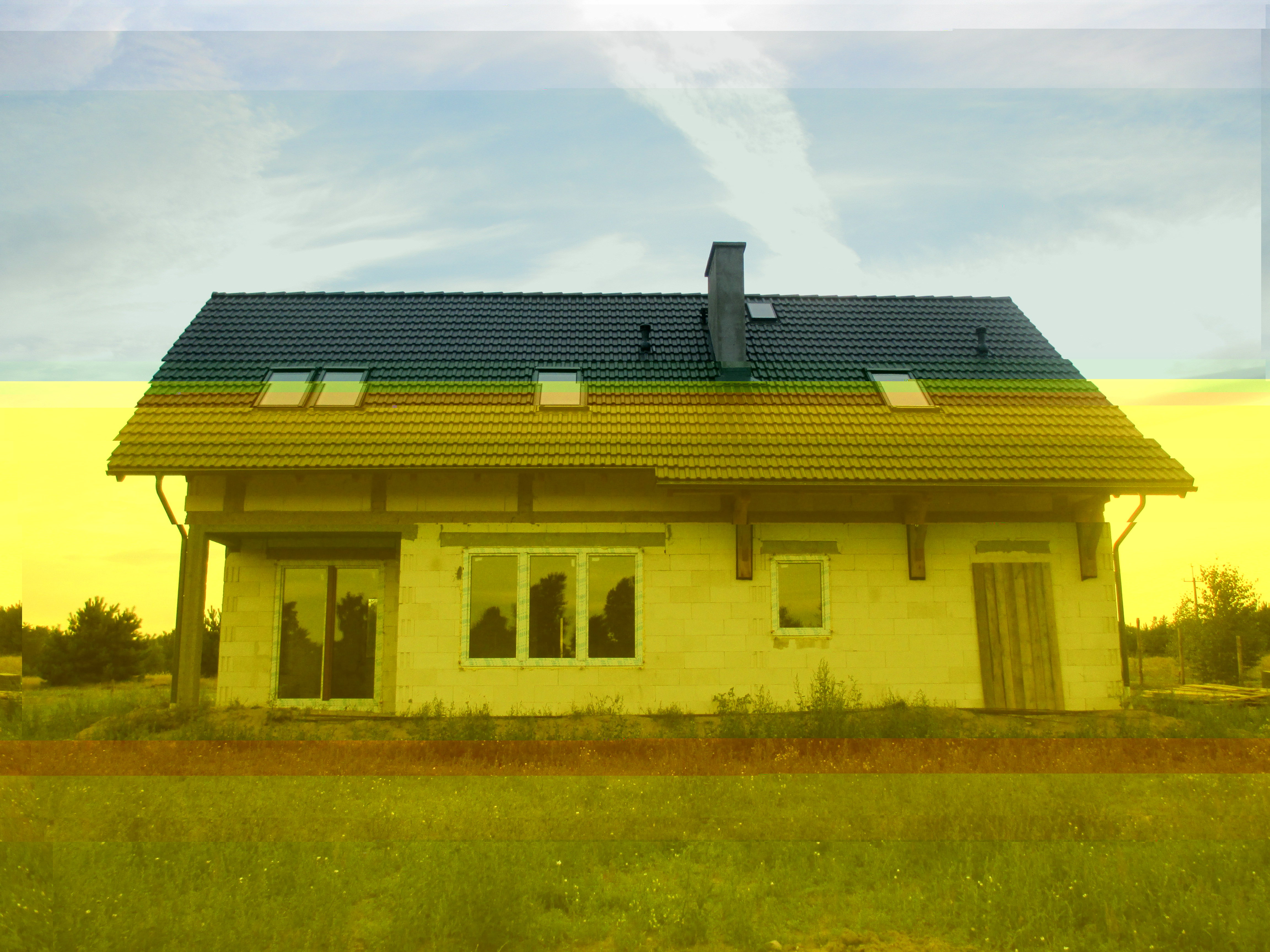 Elewacja mniej więcej taka jak w projekcie, aczkolwiek chcę dodać trochę od siebie... 8-), jak na zdjęciach widzisz nie mamy lukarny z tyłu, dodatkowo w garażu postawiłem luksfery zamiast okna (takie moje widzimisie).