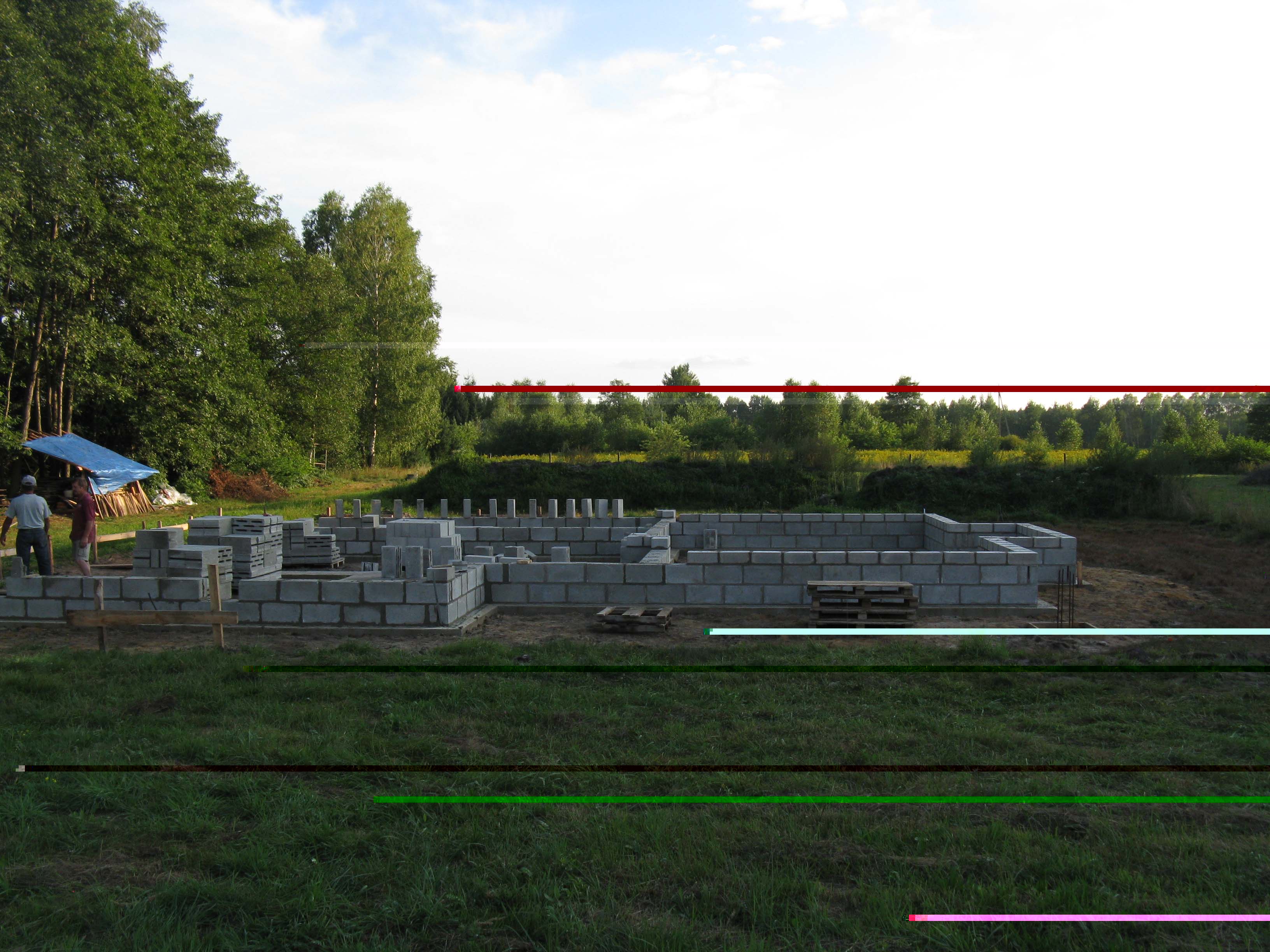 Od ostatniej wstawki troszkę się zmieniło. Fundament wzbogacił się o wieniec. Całość została docieplona styropianem (10cm), środek cały wypełniony piachem, podciągniecie rury kanalizacyjnej i wody do "środka" domu i oczywiście obsypany piachem od zewnątrz.