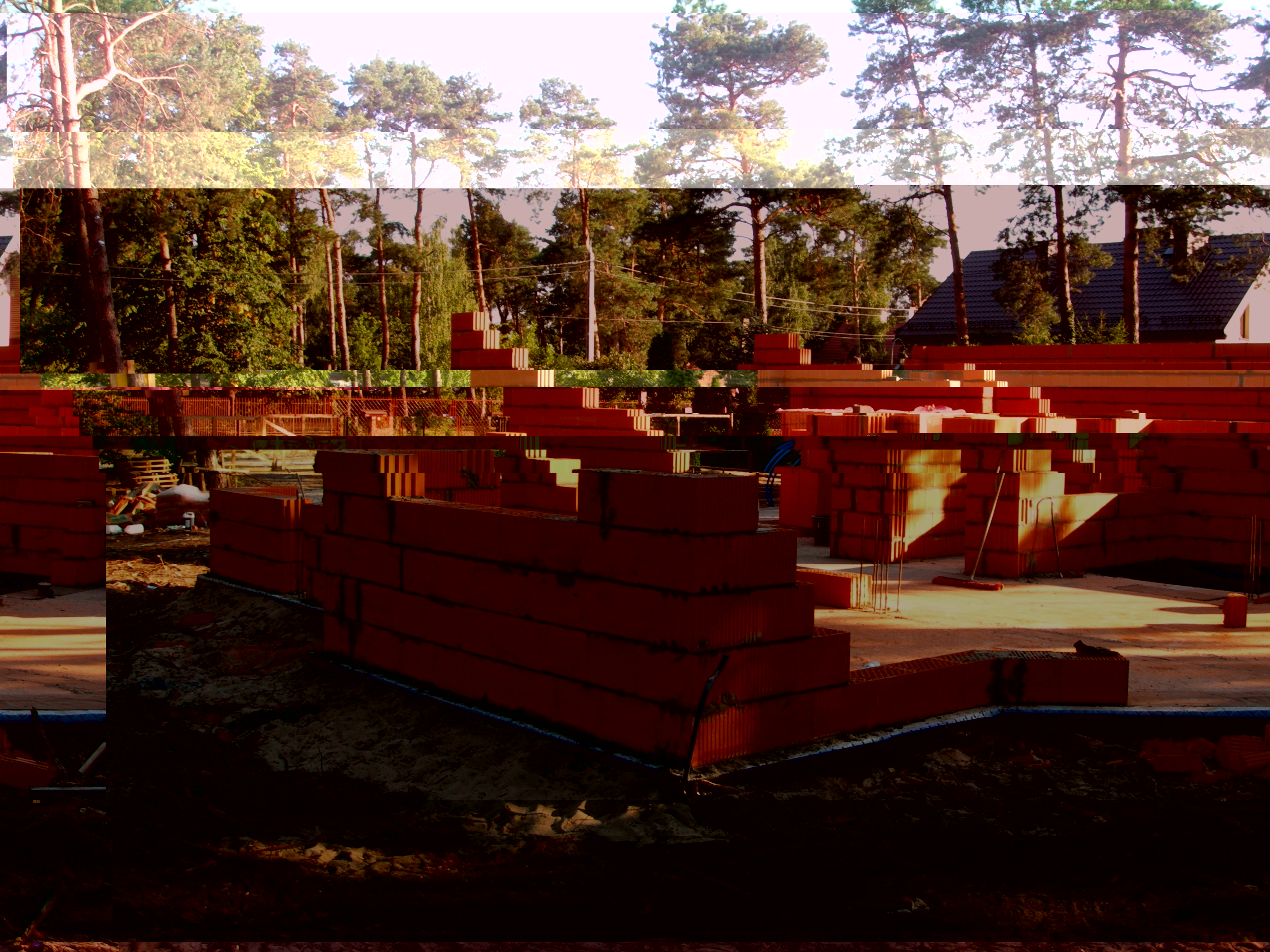 Drut 1.2 i 3 ok 30kg Ławy wylane. Beton B20 30m3 Ławy rozszalowane. Montujemy GWC jako zasilenie rekuperatora. W fundamencie rura fi160 42m ze spadkiem 2,5% w kierunku czerpni. Ławy z wymiennikiem zasypane. Stawiamy pierwsze bloczki