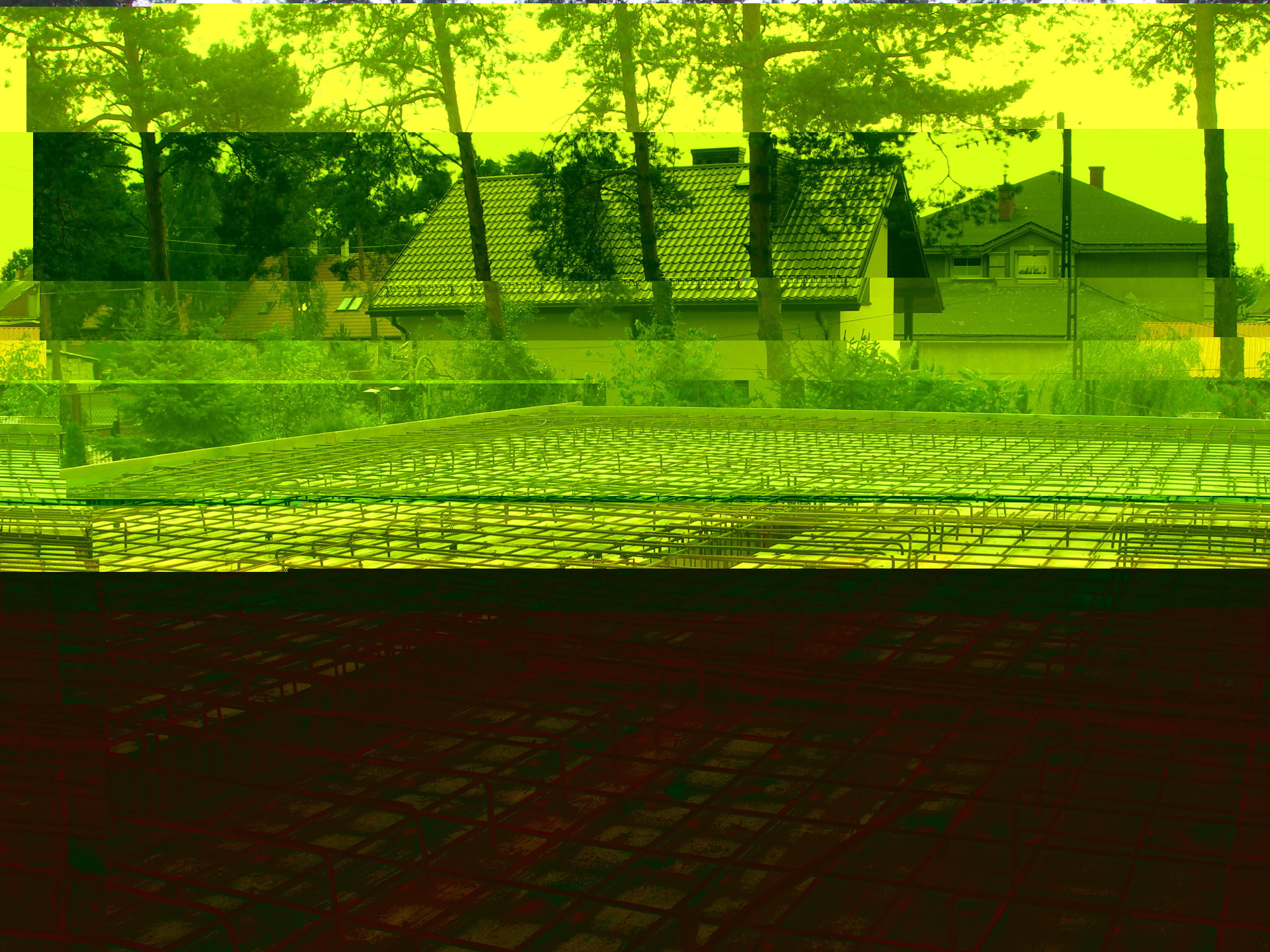 Na tym etapie wypuszczamy bednarki instalacji odgromowej spawane do zbrojenia ław fundamentowych.
