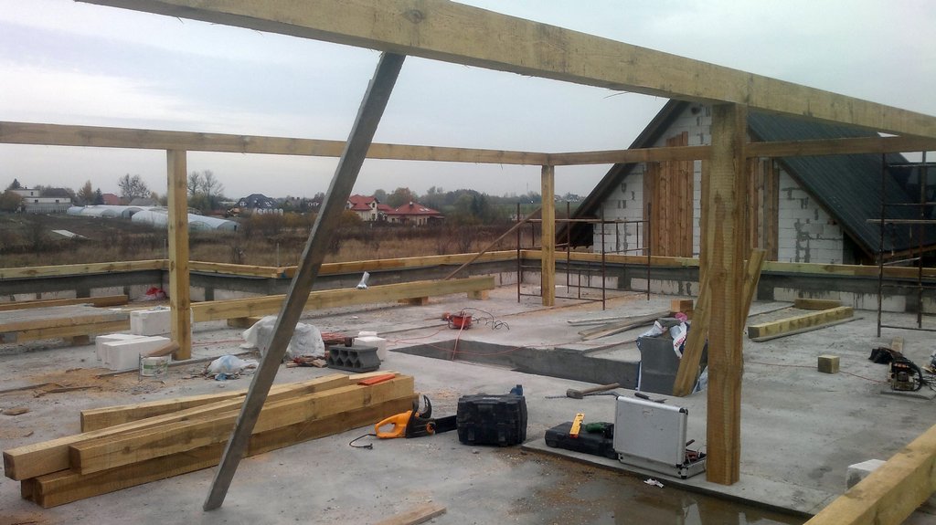 U nas wiezba skonczona ale deskowanie nie do konca braklo desek. czekamy wiec do Pn.