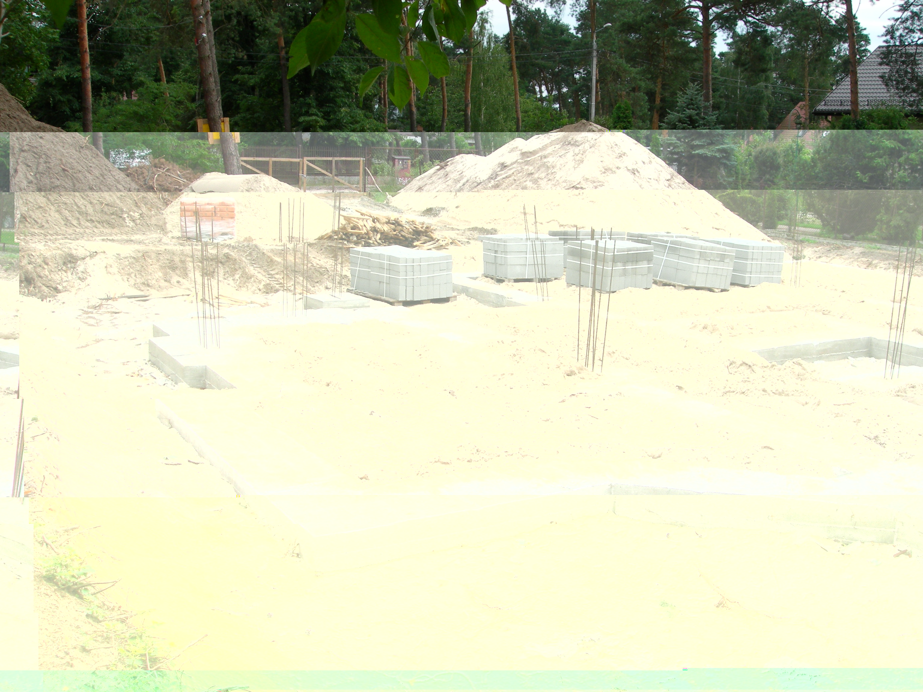 Drut 1.2 i 3 ok 30kg Ławy wylane. Beton B20 30m3 Ławy rozszalowane. Montujemy GWC jako zasilenie rekuperatora. W fundamencie rura fi160 42m ze spadkiem 2,5% w kierunku czerpni. Ławy z wymiennikiem zasypane. Stawiamy pierwsze bloczki