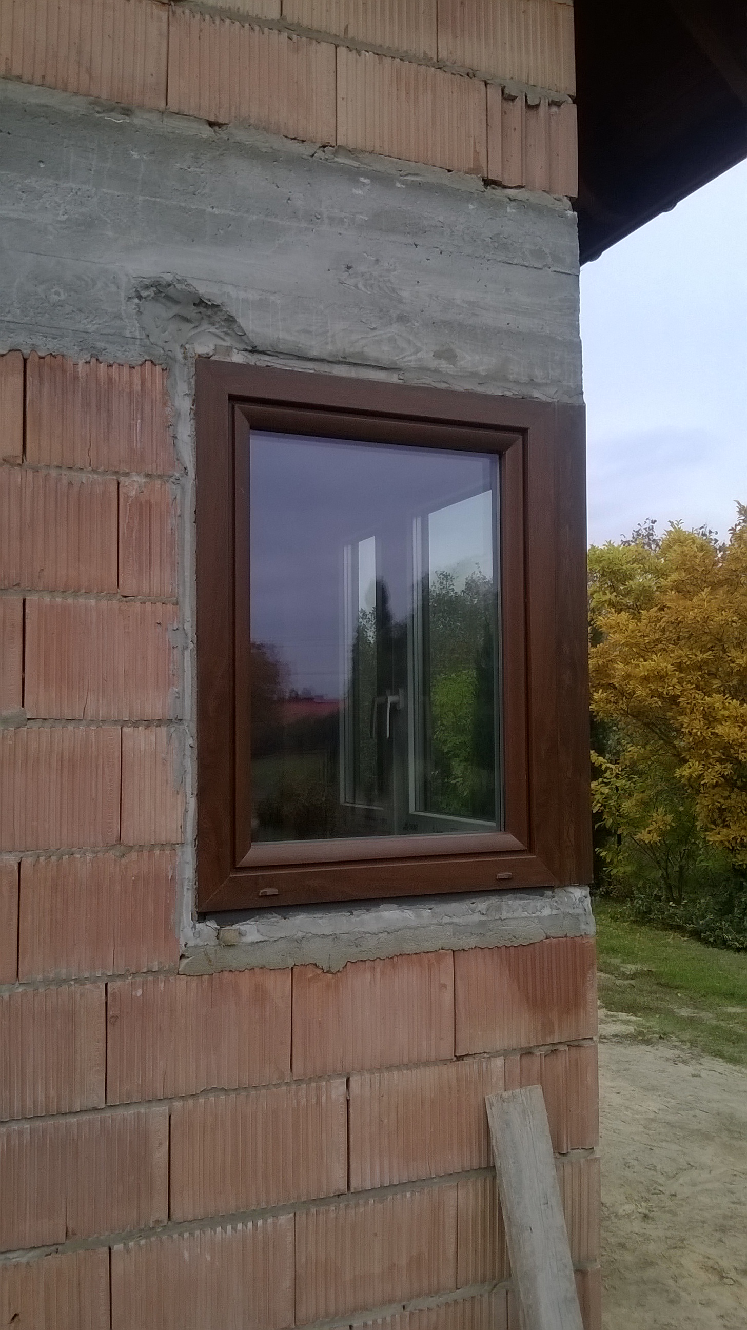 Budujemy Skromny II w lustrzanym odbiciu, tylko że poprzerabialiśmy prawie wszystkie okna. Na ścianie z oryginalnym wyjściem tarasowym nie mamy żadnych okien (specyfika działki i nasłonecznienie). Wyjście tarasowe i taras mamy w ścianie przy kuchni. Drugi, mniejszy taras po przeciwnej stronie, przy pokoju gościnnym. W sumie to równie dobrze mogliśmy 'zmaltretować" podstawowy projekt Skromnego...