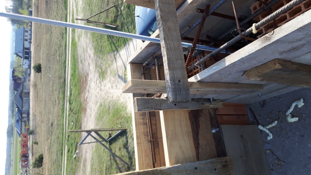 Wieniec pod murłatę szalunek oraz efekt po częściowym rozszalowaniu. Czekamy za dachem :)
