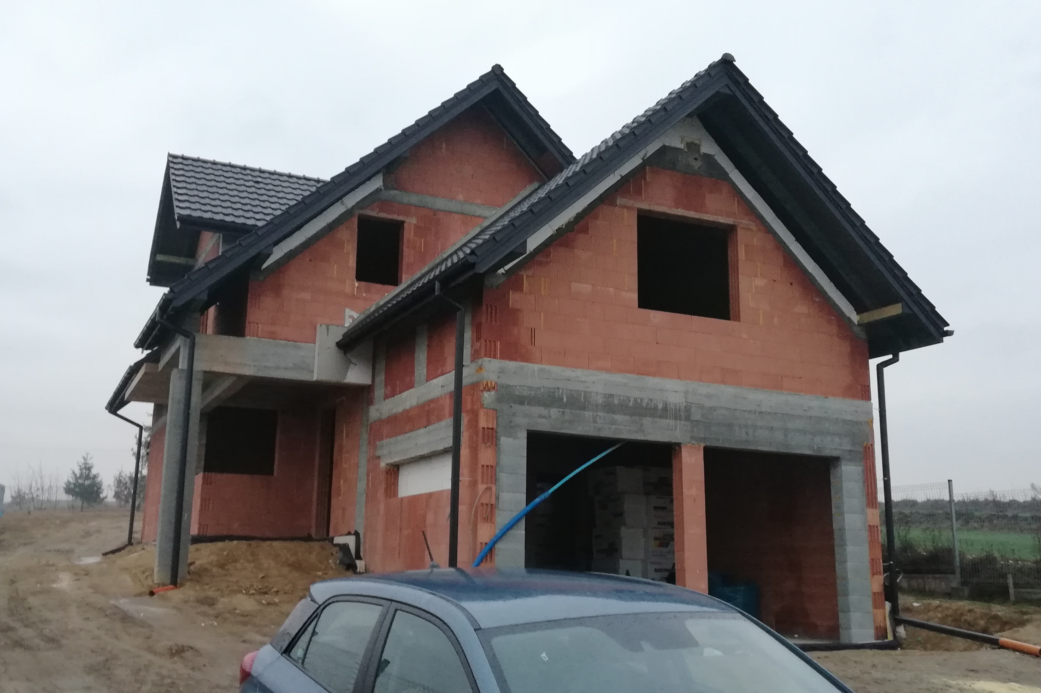 Ja mam tylko takie zdjęcie. Zaznaczam, że nie ma słupa pomiędzy kuchnią a salonem i pokoju, nie ma jeszcze wymurowanej łazienki, która powinna być po prawo. No i my budujemy lustrzane odbicie.