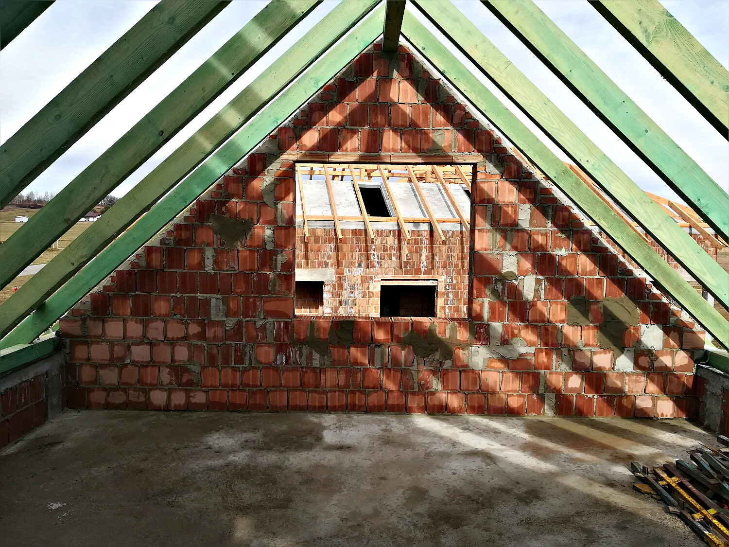 W przyszłym tygodniu jak pogoda pozwoli kładziemy styropian na skosy.