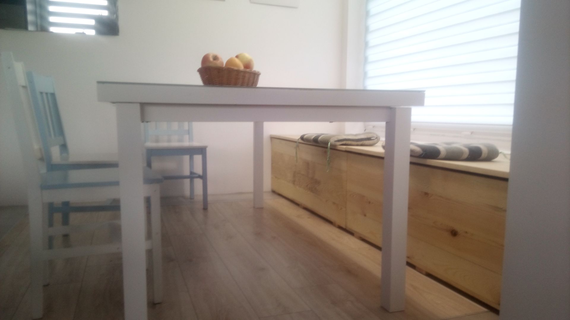 W końcu zrobione kuferki pod parapet. Z racji ograniczonego budżetu i wielkości stołu 100x180cm udało się zamontować skrzynki , ale tylko wzdłuż okna. Plany były również w przy bocznych krawędziach wykuszu, ale stół by się jednak nie zmieścił.