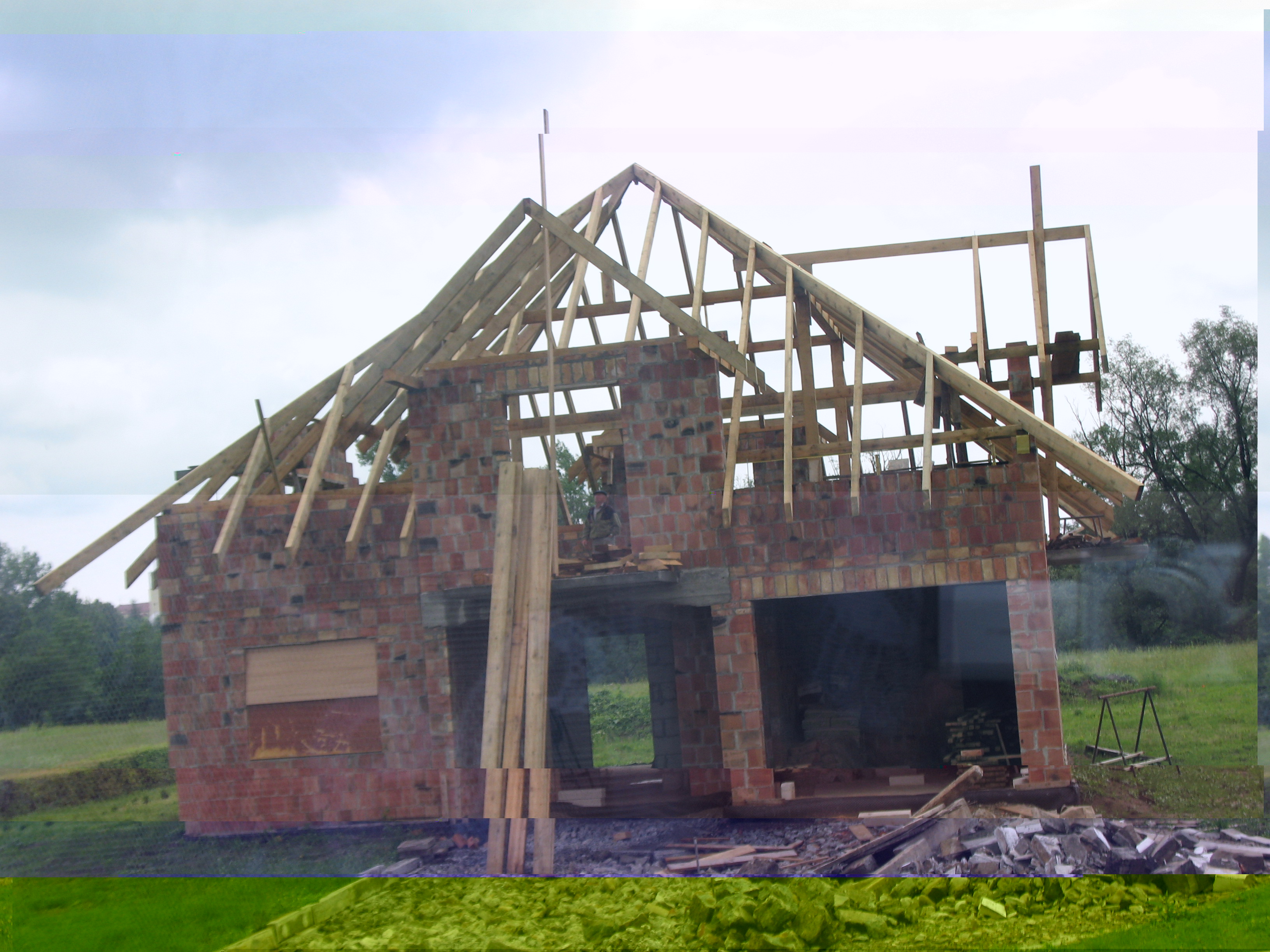 Na razie wrzucę tylko jedno zdjęcie. Oczywiście krokwie są jeszcze nie skończone. Wyszło nam 10m3 krokwi. I niecałe 3m3 łat i kontrłat. Będziemy kryli dachówką cementową i mamy wycenę zrobioną na 16tys.