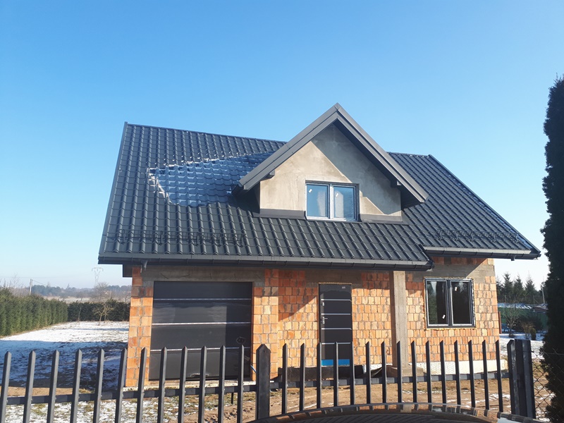 W chwili obecnej jest pokrycie dachowe i czekamy za oknami.